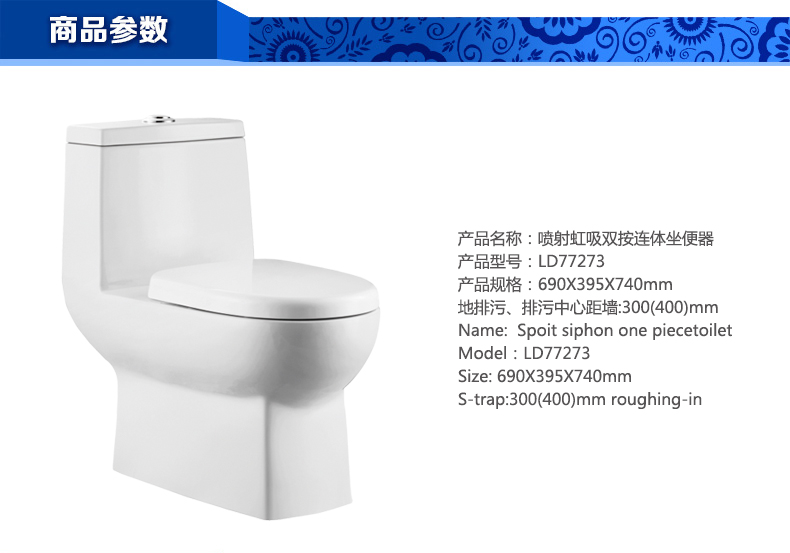 噴射虹吸雙按連體坐便器LD77205P