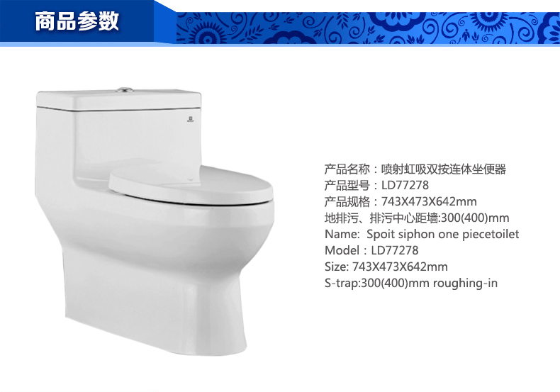 噴射虹吸雙按連體坐便器LD77278