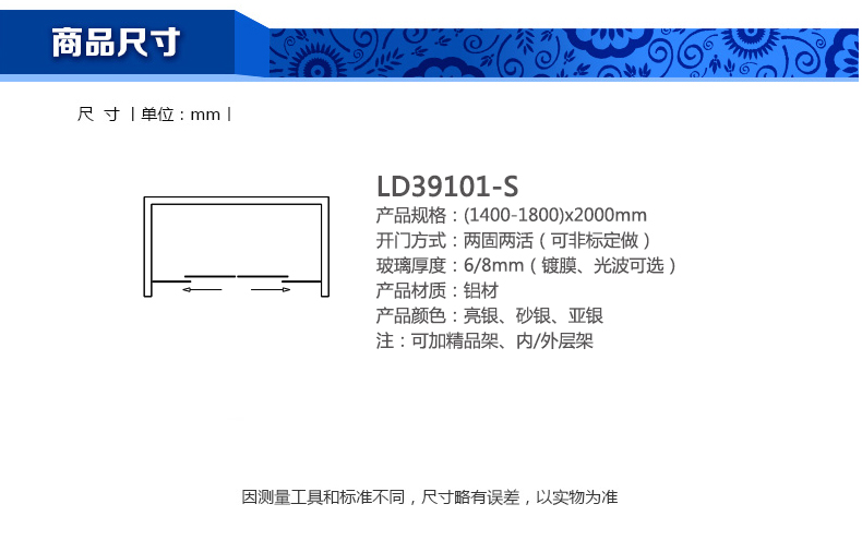 淋浴房LD39101-S(1400-1800)x2000mm