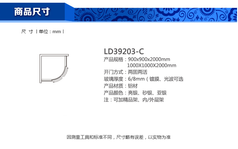 淋浴房LD39203-C900X900X2000mm 1000X1000X2000mm