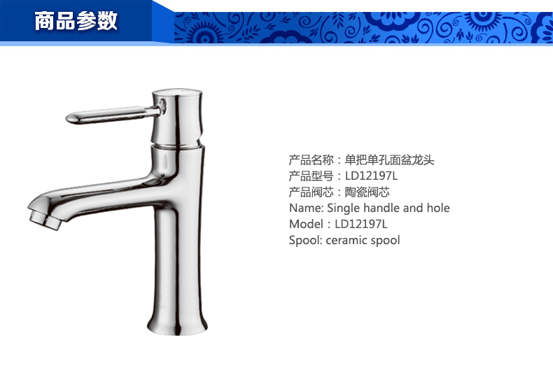 首頁(yè) - 產(chǎn)品專區(qū) - 面盆龍頭 - 單把單孔面盆龍頭LD12197L