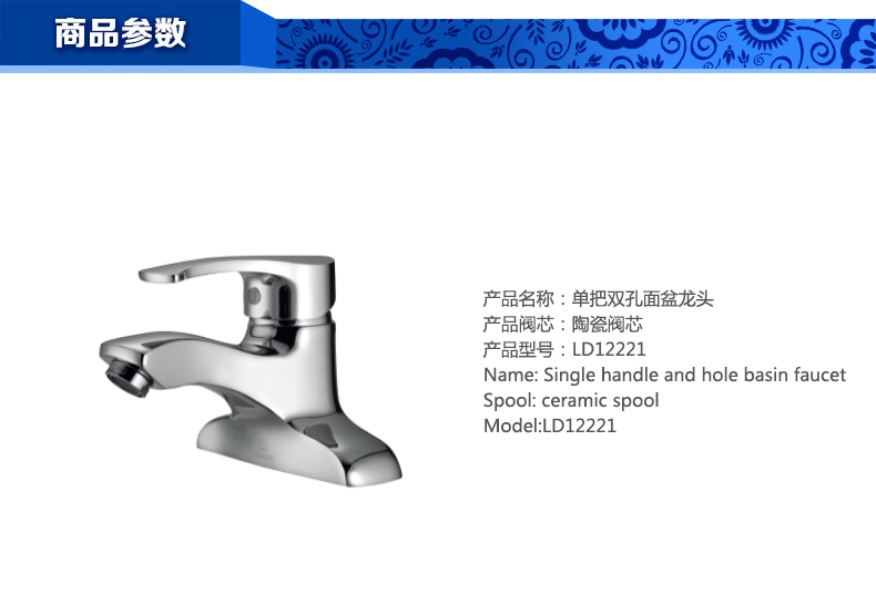 首頁 - 產(chǎn)品專區(qū) - 面盆龍頭 - 單把雙孔面盆龍頭LD12221