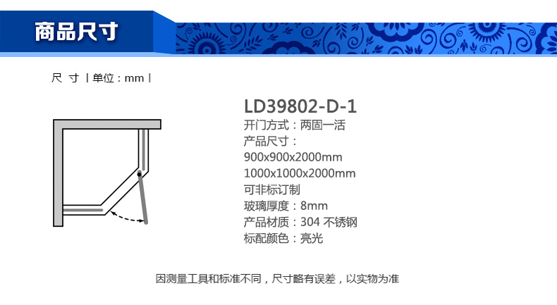 淋浴房LD39802-D-1900x900x2000mm 1000x1000x2000mm