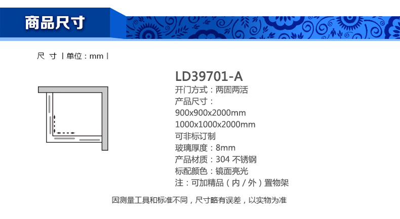 淋浴房LD39701-A900x900x2000mm 1000x1000x2000mm