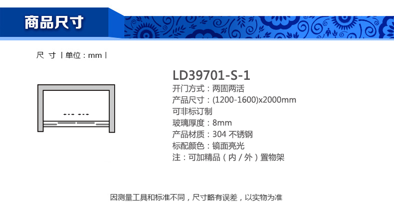 淋浴房LD39701-S-1(1200-1600)x2000mm