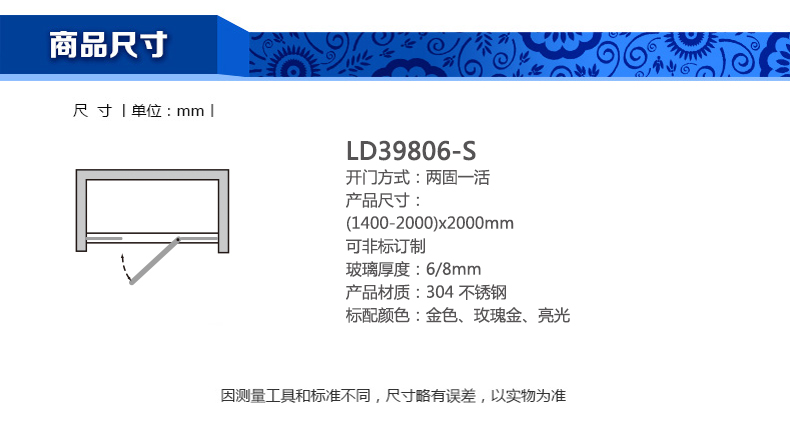 淋浴房LD39806-S(1400-2000)x2000mm