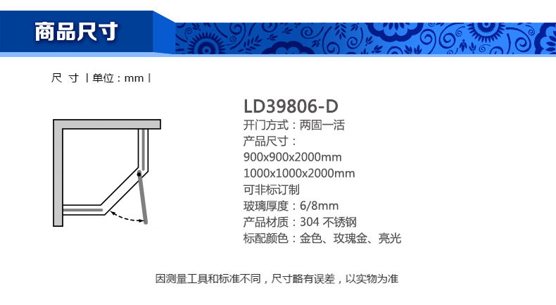 淋浴房LD39806-D900x900x2000mm 1000x1000x2000mm