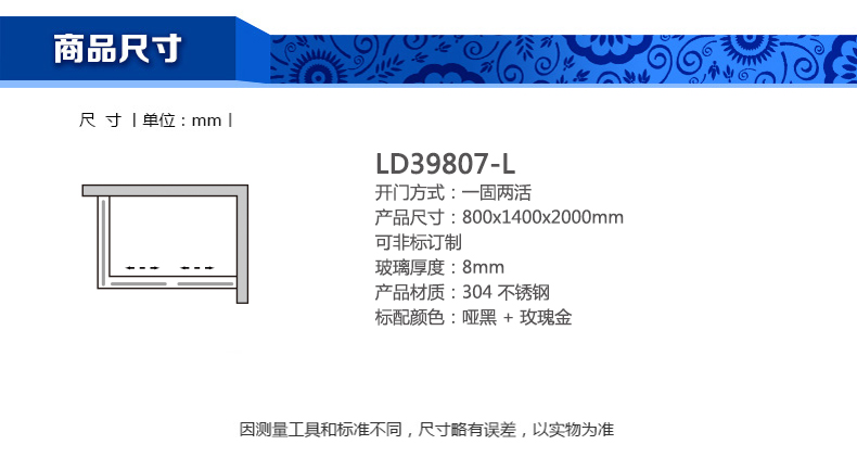 淋浴房LD39807-L800x1400x2000mm