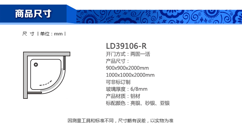 淋浴房LD39106-R900x900x2000mm 1000x1000x2000mm