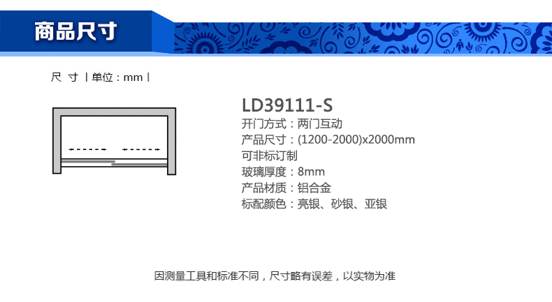淋浴房LD39111-S(1200-2000)x2000mm